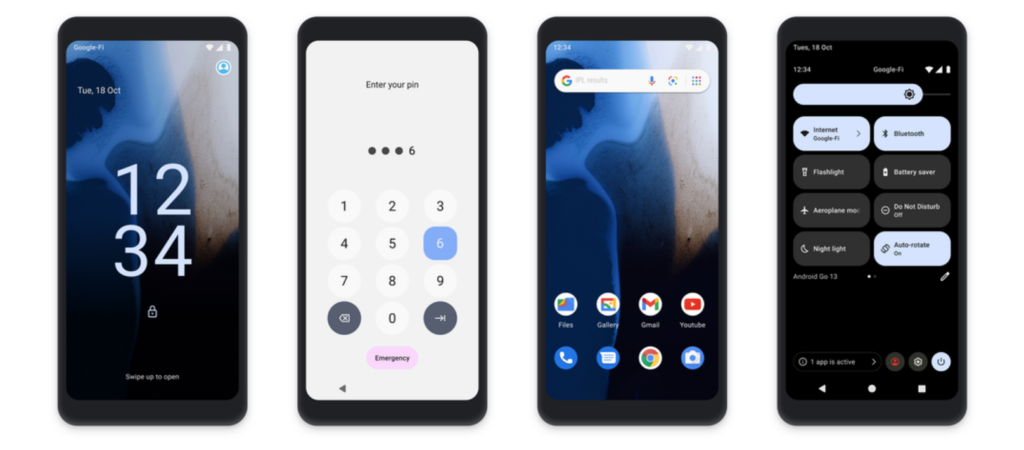 Debutta su Android 13 Go Edition anche il feed di Google Discover, che si può raggiungere facendo swipe verso sinistra partendo dalla schermata iniziale. Viene lanciato anche il linguaggio di progettazione Material You, finora limitato ai dispositivi con il sistema operativo Android tradizionale. Grazie a questa novità, anche su Go è ora possibile ottenere un’unità cromatica di tutte le sezioni del telefono in base allo sfondo scelto.