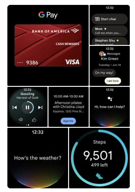 Un utente di Reddit ha pubblicato diverse immagini dell’interfaccia di Wear OS 3. Un modo per scoprire i potenziali menu del Pixel Watch senza la personalizzazione di Samsung. In particolare, possiamo vedere un bel design con gradienti e menu presentati in linee ovali.