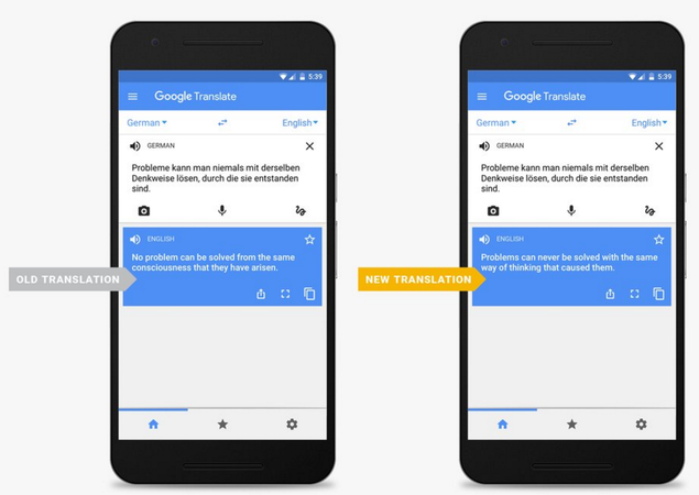 L’inedita tecnica sarà utilizzata solamente per le traduzioni dall’inglese verso altre otto lingue (lingua italiana esclusa!) e sfrutterà il riconoscimento della frase per proporre traduzioni più accurate possibili. In pratica, le parole non verranno più prese singolarmente, tradotte e interpretate a seconda di quelle vicine ma il sistema prenderà in esame tutta la frase e offrirà una traduzione automatica. Non solo, con il passare del tempo il machine learning affinerà sempre di più le traduzioni basandosi su quelle precedenti. Imparerà da solo.
