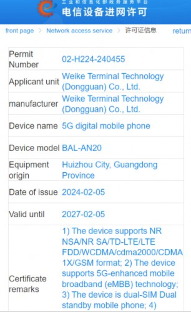 Ulteriori conferme arrivano dalla certificazione depositata dal produttore presso il MIIT (Il ministero cinese per l’industria e l’Information Technology). [fonte]