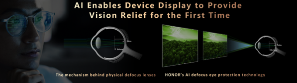 L’aumento globale dei casi di miopia causati da una visione prolungata dello schermo, ha portato HONOR allo sviluppo di questa soluzione. Lo strumento sfrutta l’IA per simulare la messa a fuoco degli occhiali sul display. Prendono spunto dalle lenti defocus, le quali favoriscono una visione centrale chiara, andando a sfocare il campo visivo periferico dell’utente. In questo modo avviene una percezione visiva alterata che rallenta il processo di allungamento dell’occhio che porta alla miopia. Secondo quanto affermato dal brand, l’AI Defocus Eye Protection di HONOR ha dimostrato di ridurre la miopia transitoria degli utenti di 13 gradi in media dopo 25 minuti di lettura, con alcuni utenti che hanno registrato una riduzione massima di 75 gradi.