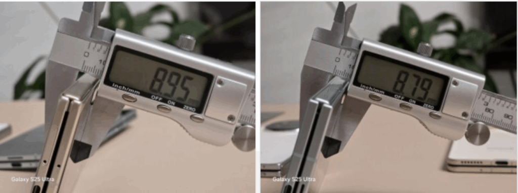 Il noto leaker Ice Universe ha pubblicato un video in cui dimostra, con tanto di calibro alla mano, che il Galaxy Z Fold7 risulterebbe più sottile del Magic V5, nonostante le specifiche ufficiali indicherebbero il contrario. Nei suoi test, il Fold7 misura 8,79 mm, contro gli 8,95 mm rilevati per il Magic V5 (in versione Ivory White, teoricamente la più sottile tra le varianti disponibili).