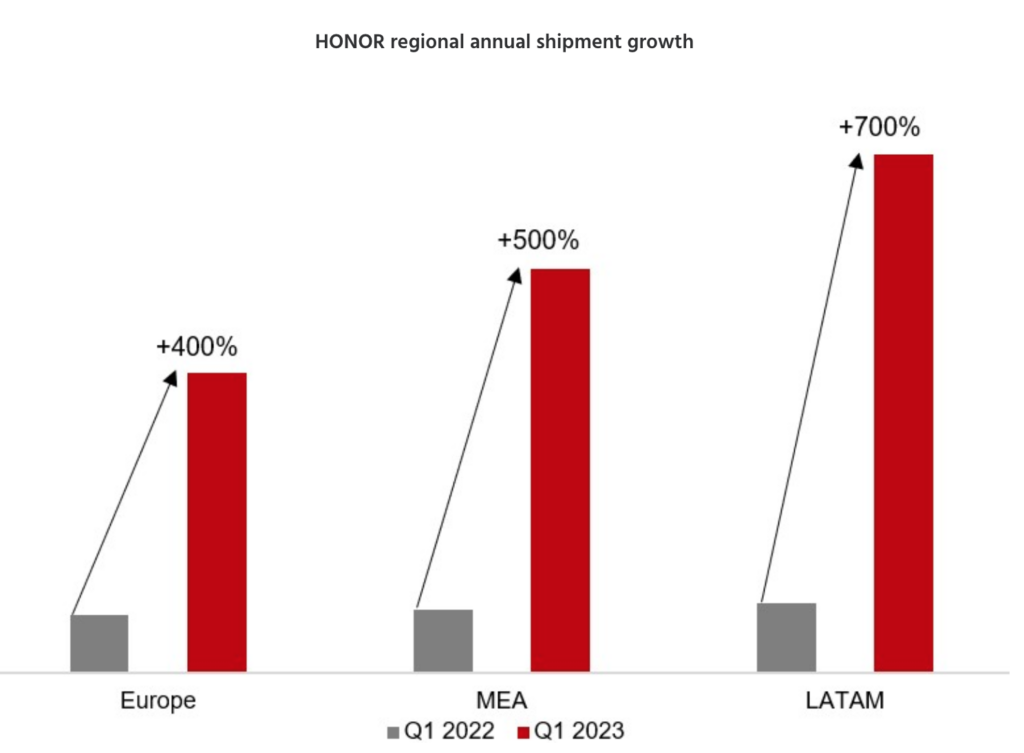 Guardando ai principali mercati mondiali HONOR, nell’ultimo anno, ha registrato una crescita impressionante in tre regioni: Europa, Medio Oriente e Africa e America Latina. Qui le sue spedizioni sono aumentate rispettivamente di oltre cinque, sei e otto volte.