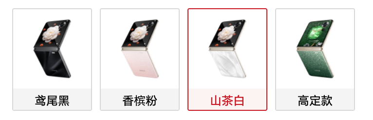 Honor Magic V Flip è disponibile nelle colorazioni Iris Black, Camellia White e Champagne Pink. È presente anche una versione in edizione limitata Jimmy Choo, caratterizzata da un verde glitterato.