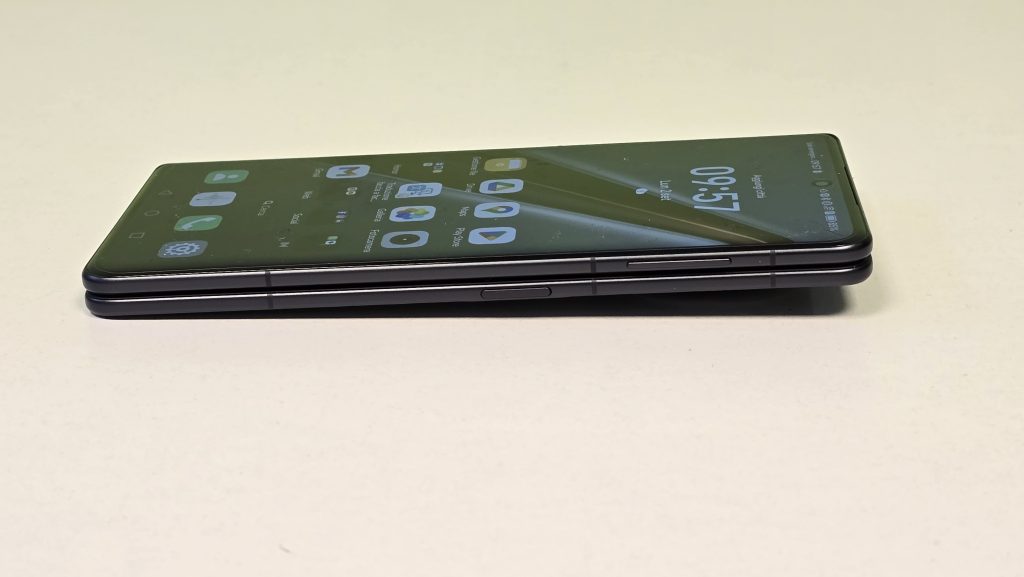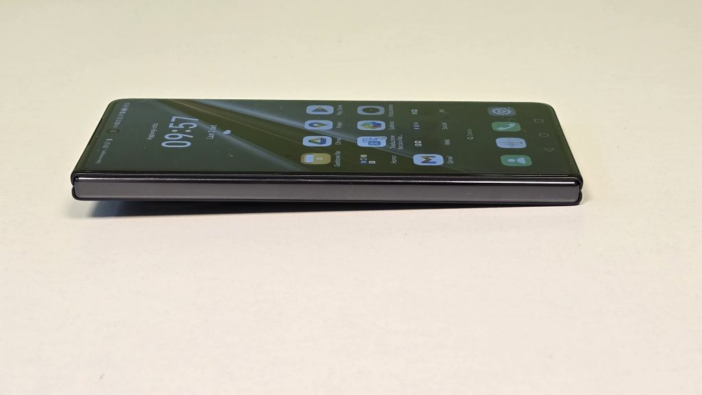 Anche i materiali del pannello posteriore sono di grande qualità, con la presenza del vetro satinato e antiscivolo della versione Green, la texture in pelle vegana della versione Reddish Brown e la Super Fibra del modello Black, che viene utilizzata per la prima volta su uno smartphone pieghevole ed è definita dal produttore come più forte dell’acciaio.