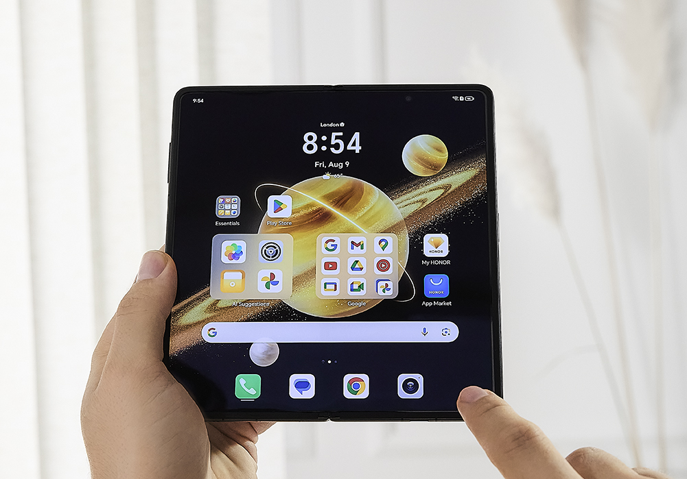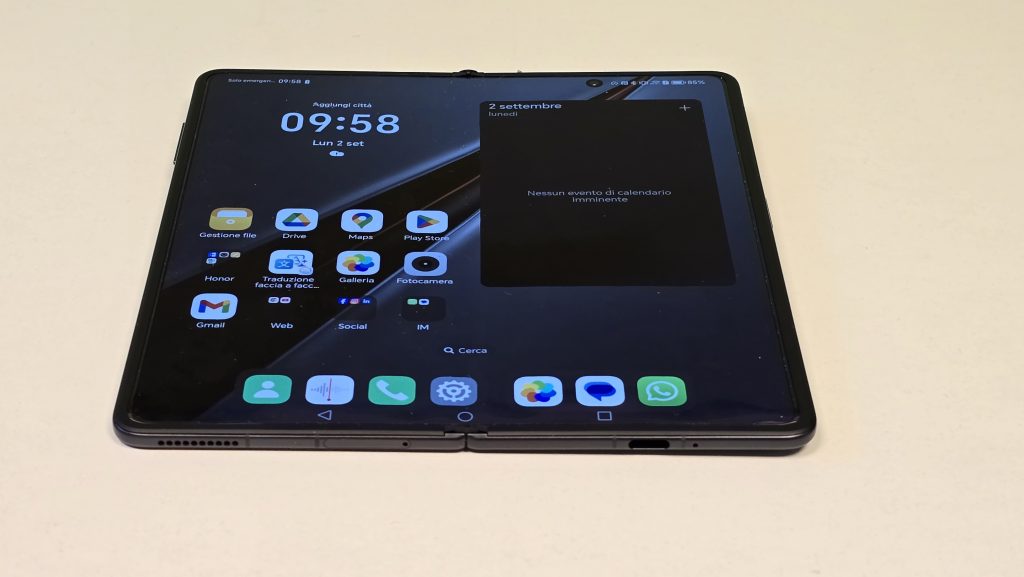 Honor Magic V3 è animato da Android 14, su cui lavora l’interfaccia MagicOS 8.0.1. a cui ora si aggiunge l’apporto dell’intelligenza artificiale. L’AI attinge dalla piattaforma di Google Cloud, e assicura una migliore gestione dell’alimentazione, introduce il traduttore in tempo reale in 10 lingue, italiano compreso, la possibilità di inviare note vocali che vengono trasformate in testo, il riconoscimento dell’oratore e, sul fronte fotografico, l’AI Eraser per cancellare presenze non gradite all’interno degli scatti, e altri algoritmi fotografici.