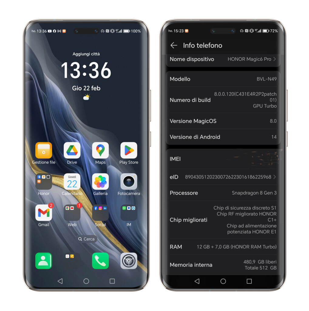 Honor Magic6 Pro è animato da Android 14, su cui lavora l’interfaccia MagicOS 8. L’interfaccia utente del produttore cinese, tuttavia, non contiene per ora le tante features annunciate in Cina supporate dall’inteligenza artificiale. Un vero peccato. Speriamo solo che possano essere introdotte in un secondo tempo con un aggiornamento software.