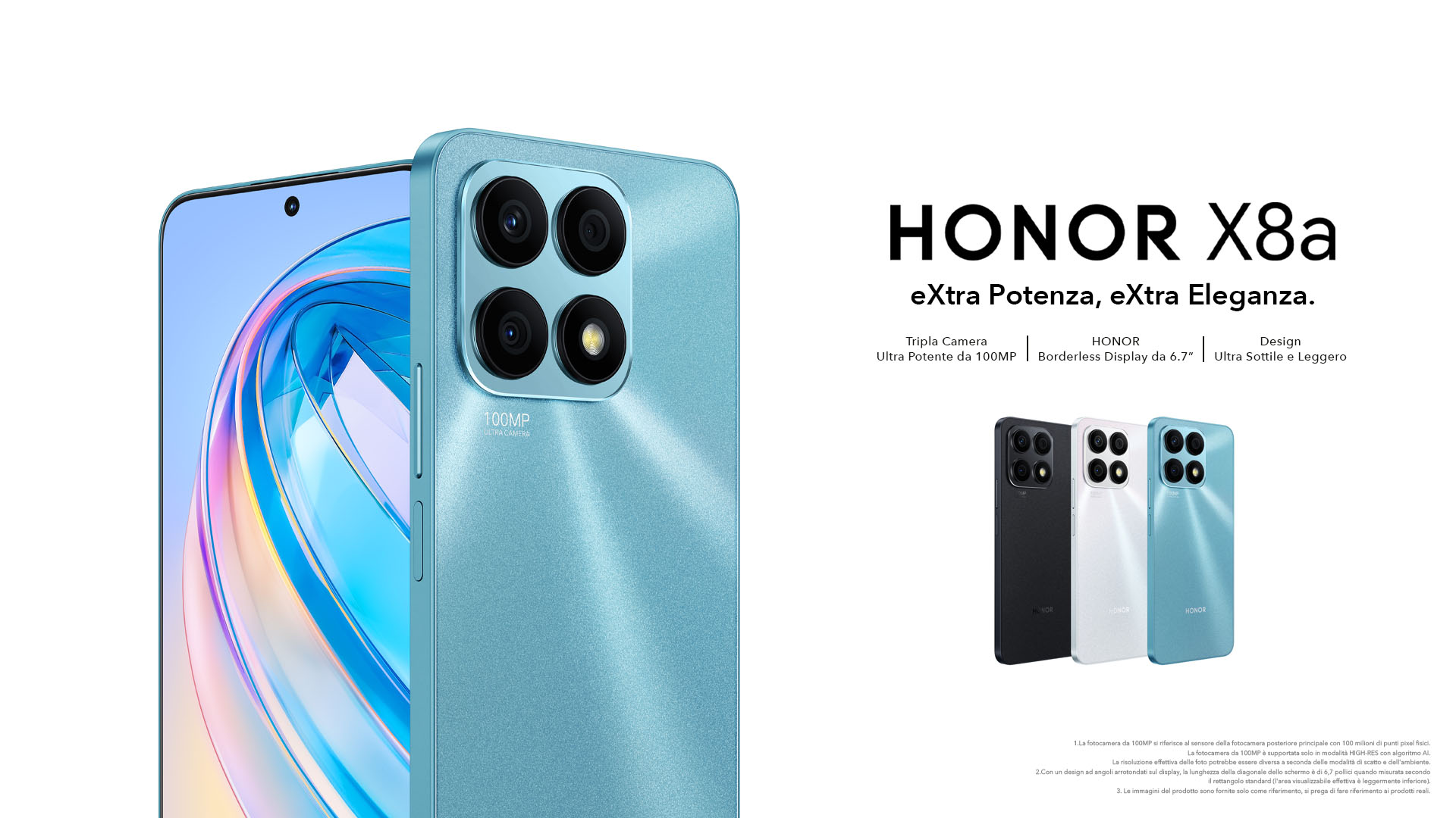 Honor X8a utilizza con magic UI 6.1 basato su Android 12, ed è disponibile nei colori Cyan Lake, Titanium Silver e Midnight Black a un prezzo di €269,90 in bundle con Honor Earbuds 2 Light. Per aggiudicarselo basta visitare il sito ufficiale o, fra non molto, andare nei negozi.