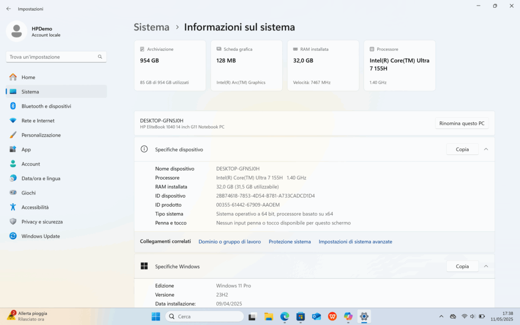 L’HP EliteBook 1040 G11 integra tecnologie avanzate basate sull’IA, come HP Smart Sense, che ottimizza le prestazioni e previene il surriscaldamento della macchina. Inoltre, grazie alla unità di elaborazione neurale (NPU), il dispositivo può eseguire modelli di linguaggio e applicazioni IA direttamente sul notebook, migliorando la velocità di esecuzione e riducendo la latenza. Ottima anche l’integrazione con Copilot.