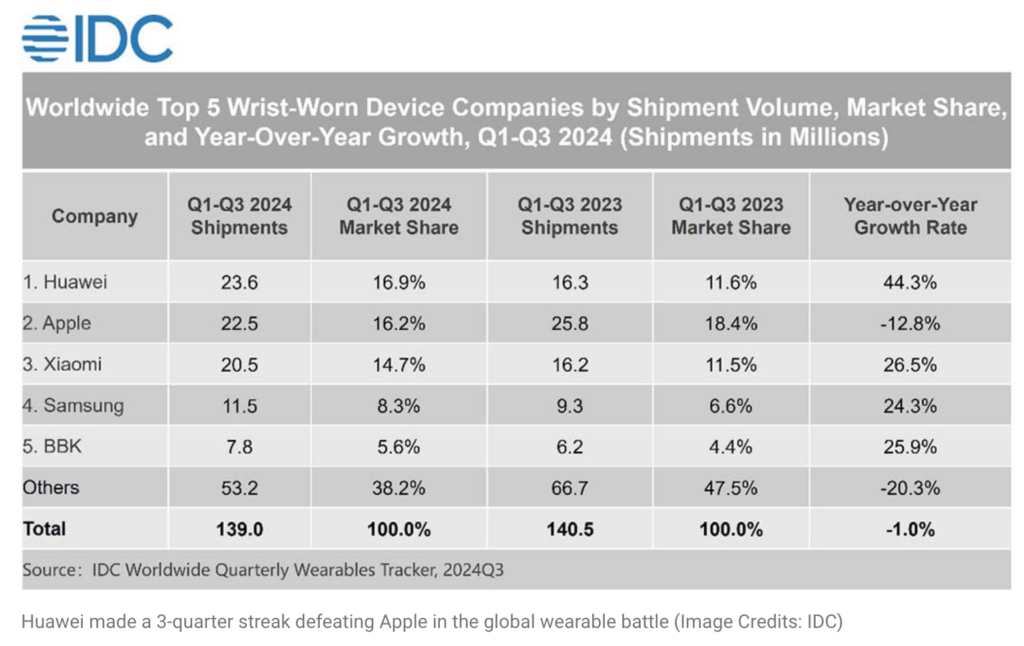 La società cinese ha registrato circa 23,6 milioni di unità vendute da gennaio a settembre, ottenendo una quota di mercato del 16,9%. Questo risultato segna un incremento importante rispetto all’anno precedente, con una crescita complessiva delle vendite globali di wearable del 44,3% rispetto allo stesso periodo dell’anno scorso.