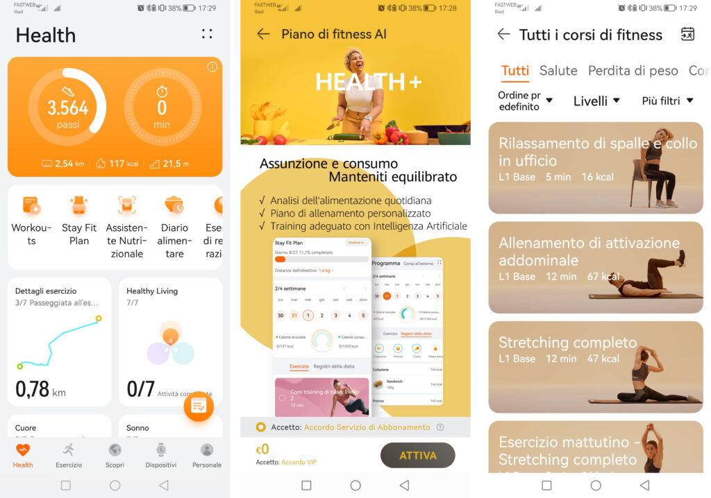 L’app, disponibile su Huawei AppGallery, è stata completamente riprogettata con una serie di funzioni avanzate che saranno disponibili su abbonamento. Tra i tanti contenuti presenti è possibile accedere a consigli su esercizi e dieta, piani di allenamento personalizzati, diario alimentare e analisi nutrizionale, supporto per il sonno e la respirazione.