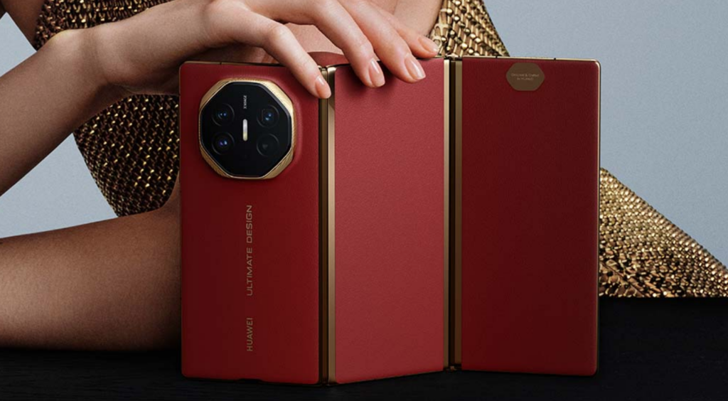 Il Mate XT si distingue per il suo design unico, caratterizzato da un sistema di tripla piegatura a Z, con meccanismi di apertura sia interna sia esterna. Questa soluzione ingegneristica non solo rende il dispositivo estremamente compatto quando chiuso, ma offre anche una superficie di visualizzazione ampia e versatile una volta aperto. Disponibile nelle colorazioni Rosso e Nero, il Mate XT vanta un elegante rivestimento in pelle vegana sul retro e dettagli in oro sui lati, con un design che, secondo Huawei, “rappresenta il vero valore dell’arte”. Il modulo fotocamera “star diamond” sul retro aggiunge un ulteriore tocco di originalità.