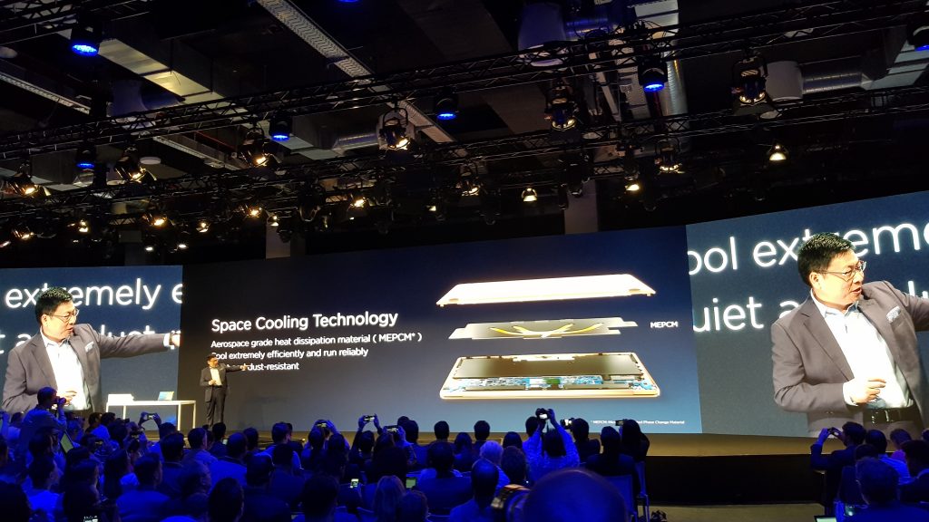 Interessante la tecnologia di raffreddamento studiata da Huawei per il MateBook X derivata da tecnologia aeronautico. Nella fattispecie la Space Cooling Technology sfrutta il Microencapsulated Phase Change Material, comunemente utilizzata in campo aerospaziale, prevede l’assenza di ventola per avere ingombri ancora più compatti e l’assenza di rumori provocati da fan in rotazione. Questo approccio riduce anche i malfunzionamenti legati ad eventuali blocchi della ventola e alla polvere. Il display 2K è in formato 4:3 e protetto da una superficie Corning Gorilla Glass, inoltre filtra gran parte della luce blu prodotta dal sistema di illuminazione del monitor per non affaticare eccessivamenete gli occhi durante l’uso.