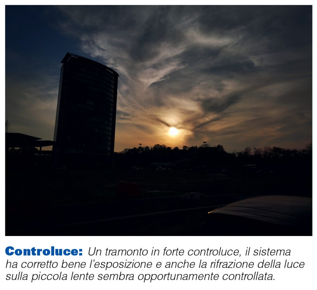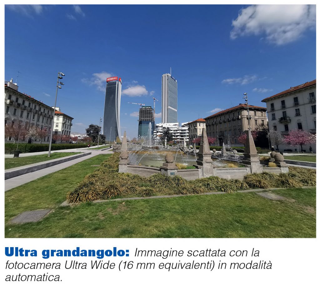 I pixel che lo compongono non hanno la consueta sequenza RGB, perché i pixel verdi sono sostituiti da unità gialle che determinano una nuova successione RYB. Questa scelta permette di acquisire, a parità di tempo di esposizione, circa il 40% di luce in più rispetto alla soluzione precedente. La lente accoppiata determina una lunghezza focale equivalente a 27mm nel formato 35mm; l’apertura massima è f/1.6. La seconda unità dispone di 8 Megapixel e probabilmente rappresenta la killer app del comparto. Si tratta infatti di una fotocamera periscopica, che viene quindi montata parallelamente al corpo telefono e non perpendicolarmente, con lo scopo di ridurre l’ingombro. La sua forza sta nel disporre di una focale equivalente a 125 mm reali, con apertura f/3.4. Roba da paparazzi! La terza cam è una ultra wide, con la possibilità di inquadrare una porzione di campo davvero importante: la sua struttura prevede 20 Megapixel e una focale da 16mm equivalenti con apertura massima f/2.2. La ciliegina sulla torta è il ToF, un quarto sensore capace di analizzare la tridimensionalità e la profondità di campo della scena, massimizzando la resa dello sfocato e molti altri parametri. Non manca un sistema AF ibrido (laser/fase/contrasto) e un sistema di stabilizzazione ottica. Insomma a questa fotocamera sembra davvero non mancare niente.