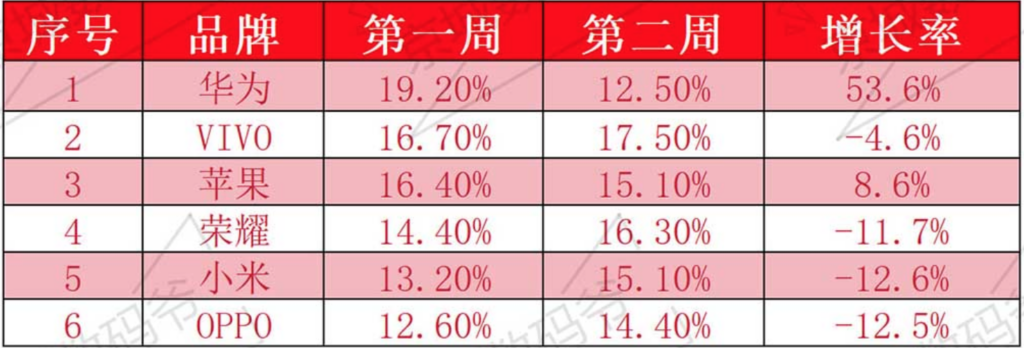 Huawei è tornata al primo posto della classifica cinese dei produttori di smartphone. I risultati sono stati condivisi sul social network Weibo da un affidabile blogger, che riprende fonti dell’industria.