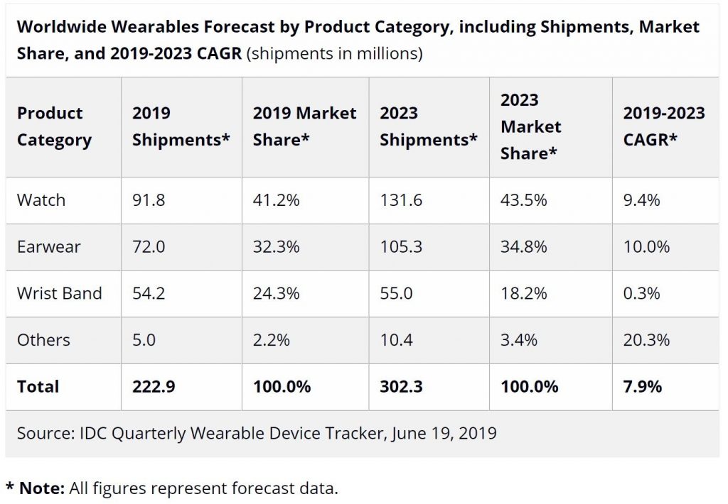 IDC afferma che questo settore raggiungerà 302,3 milioni di unità nel 2023, in netta crescita rispetto ai 222,9 milioni di unità stimati per il 2019, con smartwatch e cuffie intelligenti che rappresentano non meno del 70%.