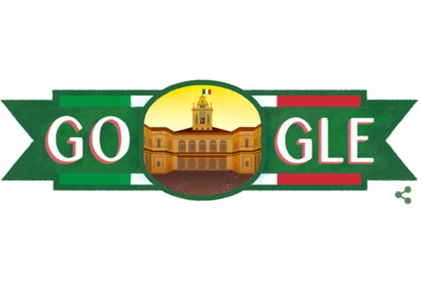 Bianco, rosso e verde con la seconda ‘O’ di Google che contiene un’immagine del Palazzo del Quirinale.