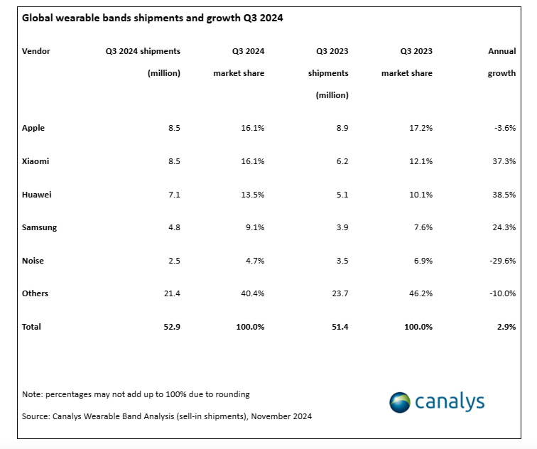 Xiaomi ha ottenuto il miglior risultato trimestrale dal quarto trimestre 2020, grazie alla forte domanda per Mi Band 9 e la serie Redmi Watch 5. L’azienda ha diversificato la sua offerta introducendo varianti Pro, NFC e Active per le band, e modelli Lite e Active per gli smartwatch della serie Redmi Watch 5, con una gamma di colori e materiali che ha attirato una clientela più ampia.