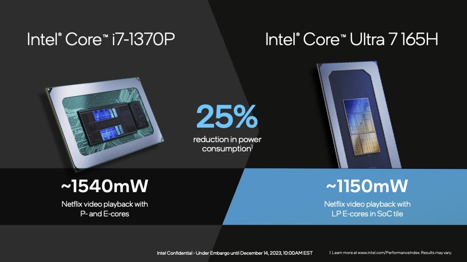 Grazie alla tecnologia di assemblaggio chiamata Foveros, i nuovi chip offrono un aumento dell’efficienza energetica del 20%, con un focus sui core E e P. Intel afferma prestazioni superiori all’11% rispetto ai chip AMD Ryzen con lo stesso TDP e una riduzione del 25% dell’impronta energetica per la gamma Ultra 7.