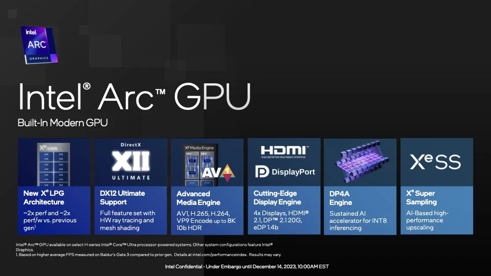 Le GPU Intel Arc saranno disponibili solo in configurazioni con processori Intel Core Ultra H, che offriranno almeno 16 GB di RAM in modalità Dual Channel. Le configurazioni con 8 GB di RAM utilizzeranno le GPU Intel Graphics integrate.