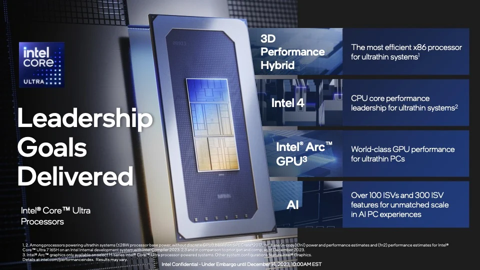 Le prime laptop con processori Core Ultra saranno disponibili a partire da oggi, 14 dicembre.