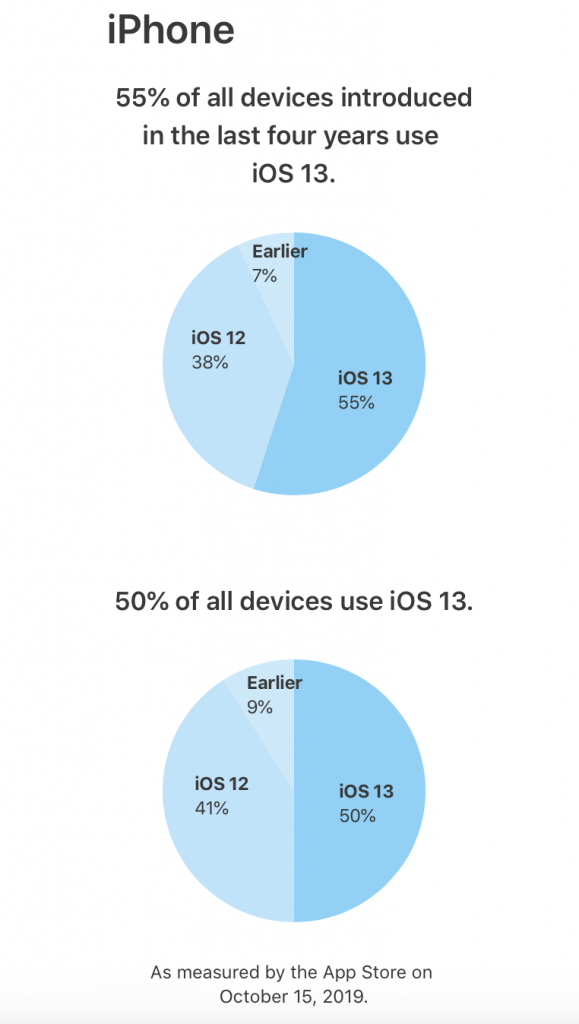 Apple ha aggiornato la sua pagina delle statistiche sull’App Store per informarci sull’attuale tasso di adozione dei suoi ultimi sistemi operativi mobili iOS 13 e iPadOS 13.