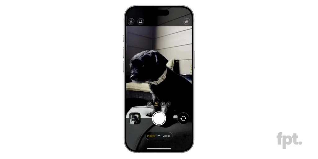I pulsanti per la selezione del livello di zoom sono circondati da un sottile anello bianco per migliorarne la visibilità, e le modalità di scatto non sono immediatamente visibili ma possono essere rivelate toccando un’icona a freccia.
