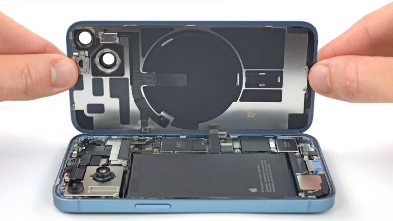 L’iPhone 14 può essere aperto dallo schermo o dal vetro posteriore. iFixit rileva che “il nuovo telaio metallico centrale che sostiene la struttura ha richiesto una revisione completa”. Per l’organizzazione, “Apple è tornata al tavolo da disegno e ha rielaborato i componenti interni dell’iPhone per facilitare le riparazioni. Questo aggiornamento è così semplice che i migliori revisori tecnologici del mondo non se ne sono accorti”.