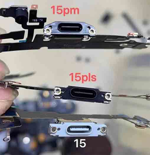Oggi possiamo dunque dare il primo sguardo alla porta collegata alla Printed Circuit Board dello smartphone. Le immagini condivise da @lipilipsi su Twitter.com mostrano il connettore di iPhone 15 Pro Max, iPhone 15 Plus e iPhone 15.