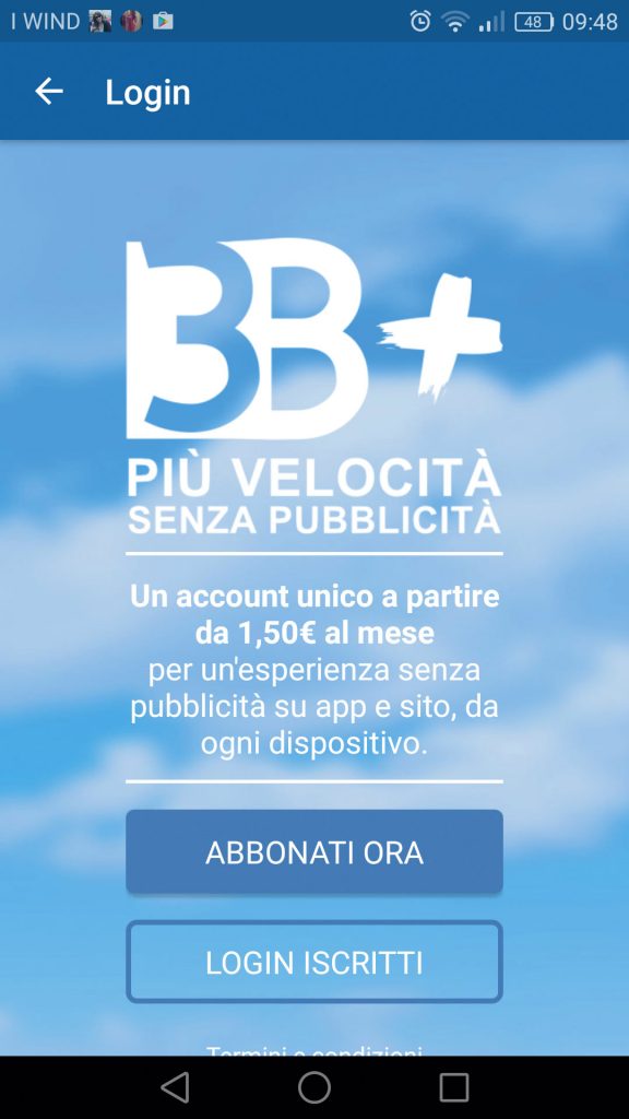 Con l’abbonamento a 3BMeteo, a partire da 1,5 euro al mese, si possono eliminare dalle pagine di consultazione i messaggi pubblicitari. L’app è anche più veloce.