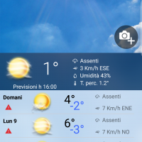 Basta toccare il display per avere le previsioni ora per ora (e a 11 giorni) del luogo di proprio interesse. Sono fornite anche le ore esatte di alba e tramonto.