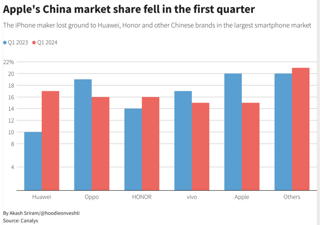 Ma qual è il motivo per cui Apple, così restia ad abbassare i prezzi e ad utilizzare la leva della promozione, ha deciso di adottare la politica degli sconti? Il colosso di Cupertino ha dovuto in qualche modo reagire al successo di Huawei che ha lanciato la serie Pura 70 sul mercato locale. Huawei ha infatti superato Apple, diventando il secondo marchio di smartphone più venduto in Cina, subito dietro la sua ex sussidiaria Honor.