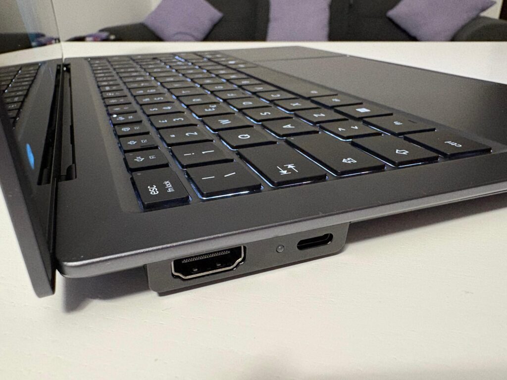 La connettività si affida a due porte Thunderbolt 4 (USB-C), una HDMI 2.1 posizionata sul lato sinistro