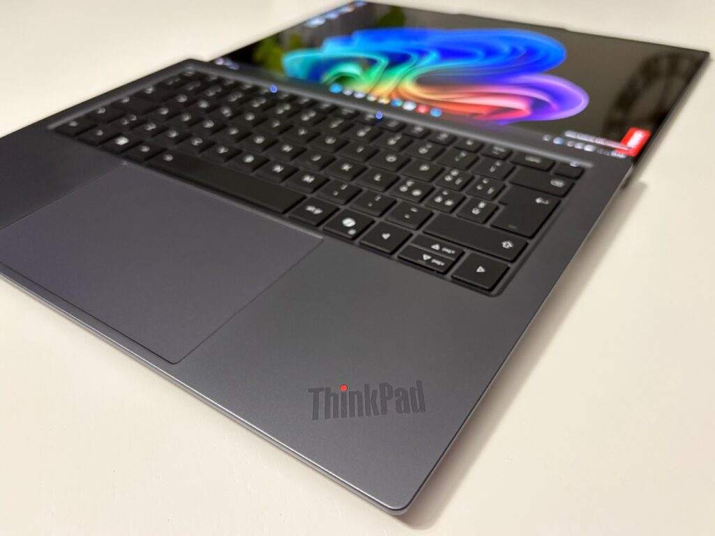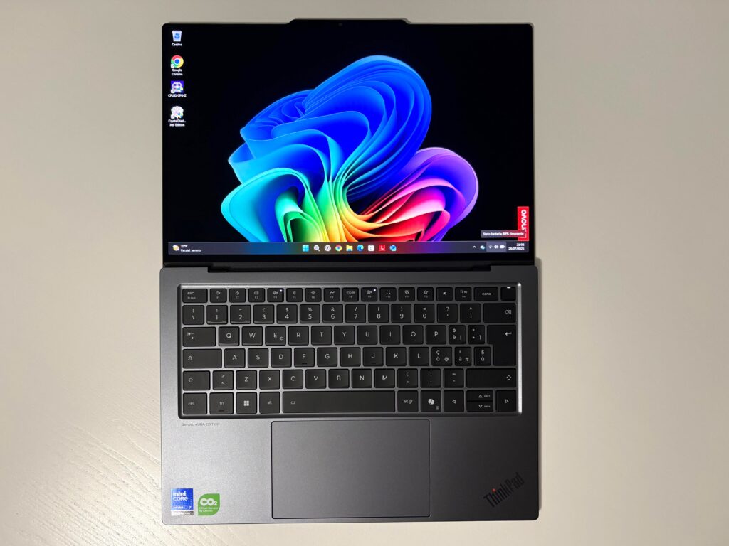 Per la prima volta, su un ThinkPad, il TrackPoint è assente: scelta coerente con la filosofia “clean” del design. La tastiera retroilluminata con luminosità auto adattante mantiene lo standard ThinkPad: precisa, silenziosa, solida.