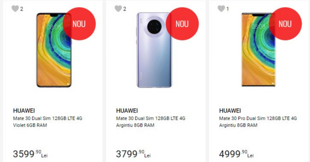 L’uscita sul mercato romeno fornisce anche le prime indicazioni sul prezzo del telefono: il Mate 30 infatti parte da 3.600 Lei (circa 760 euro), mentre il Mate 30 Pro costa 5.000 Lei (1.050 euro). I valori si riferiscono ai modelli 4G con 128 GB di spazio di archiviazione; sono disponibili anche le opzioni da 256 GB di Rom. Tali prezzi sono leggermente inferiori ai prezzi annunciati, rispettivamente di 800 e 1.100 euro.