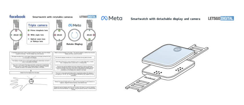 “L’orologio di Facebook verrebbe fornito con un secondo schermo, anche con più fotocamere, con diversi tipi di obiettivi. Il secondo display dovrebbe avere lo stesso formato del primo. L’utente può rimuovere facilmente lo schermo dalla sua cornice. La cassa rimane quindi al polso dell’utente con il braccialetto. Lo schermo può essere modificato, ma utilizzato anche per la realtà virtuale, mista o aumentata”, afferma LetsGoDigital.
