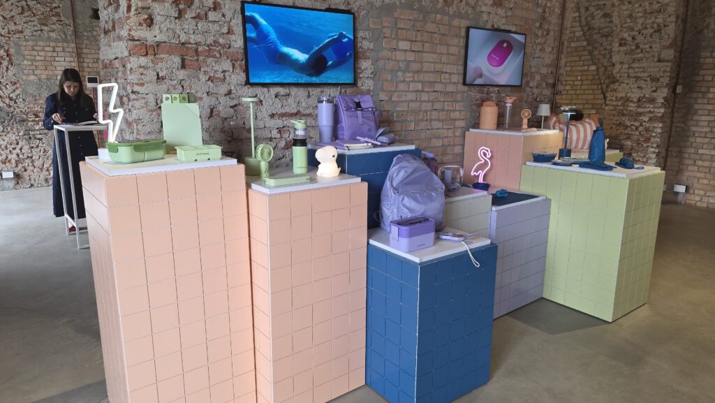 Per il viaggio, la collezione Muitomas include zaini e borse pieghevoli, borsa mare, ventole portatili con specchio e luce, oltre a pratiche pochette in neoprene. Le borse termiche in due misure e i set beauty da viaggio completano una proposta funzionale che mantiene sempre un’identità estetica riconoscibile, giocata su nuance delicate e linee morbide. La primavera-estate 2025 si colora così di oggetti intelligenti, da vivere dentro e fuori casa.