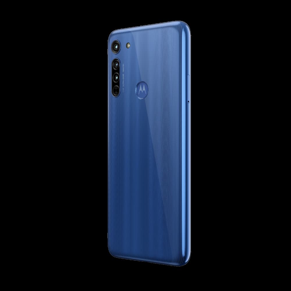 Il pannello posteriore del Moto G8 non ospita più una serie di telecamere di forma circolare ma ci sono tre telecamere in una configurazione verticale con l’obiettivo primario da 16 Megapixel. Il flash LED è spostato a destra e a sinistra troviamo il logo “Moto”.