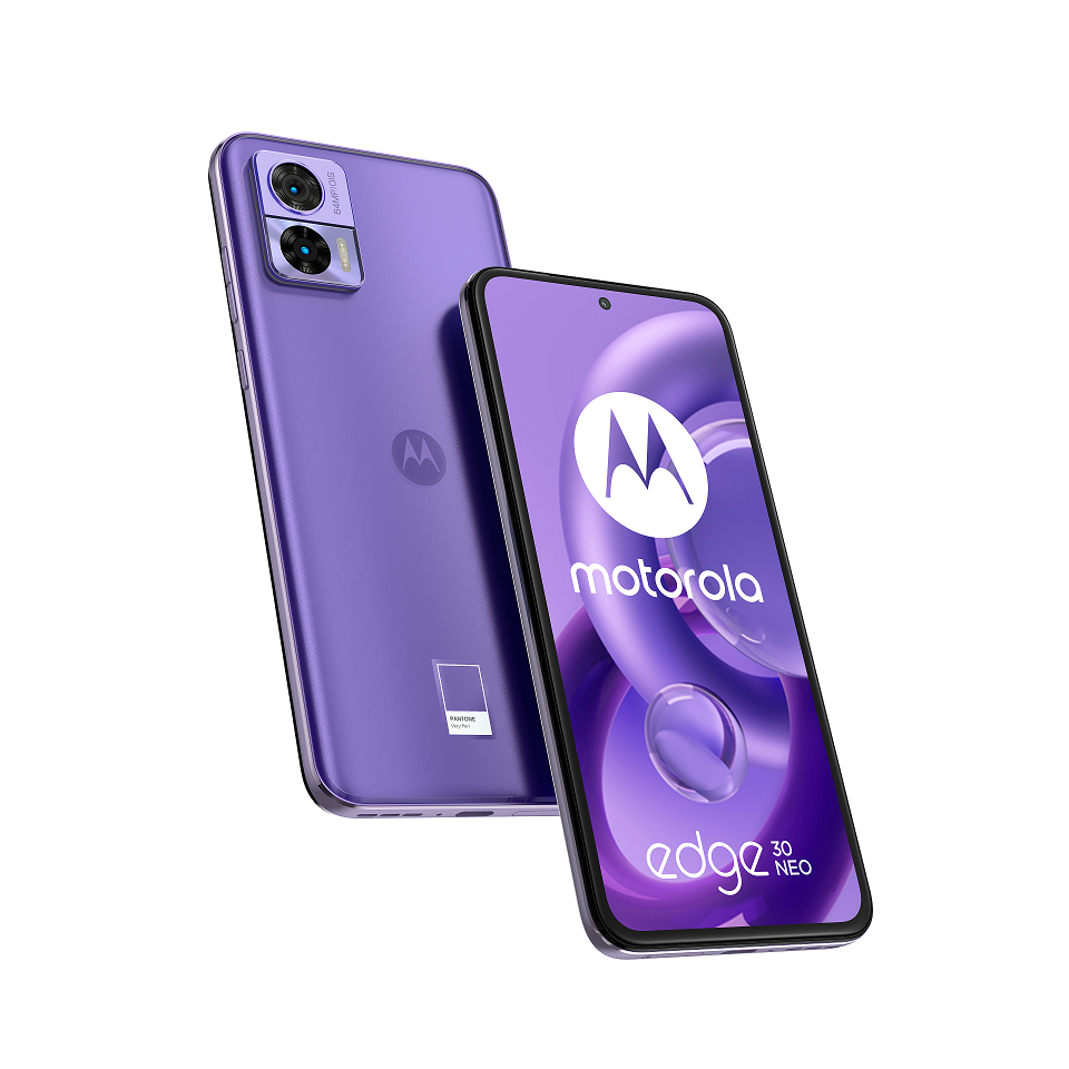 Motorola edge 30 neo è il primo dispositivo ad arrivare con i colori di tendenza selezionati nell’ambito di una nuova partnership a lungo termine tra Motorola e Pantone. Con opzioni che includono il colore Pantone dell’anno 2022, Very Peri (qui in foto), il dispositivo è stato realizzato con cura per un look particolarmente attraente. Sia che si scelga Very Peri, Aqua Foam, Black Onyx o Ice Palace, ogni dispositivo presenta un sottile inserto di chip Pantone sul retro con la possibilità di personalizzare il telefono integrando il colore nell’interfaccia utente.