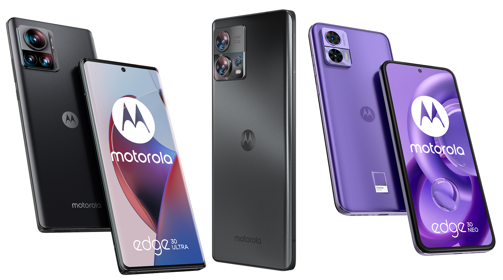 Con un evento internazionale che si tiene questa sera a Milano, Motorola ha annunciato tre nuovi smartphone flagship di fascia alta: sono i modelli Edge 30 Ultra [scheda tecnica], Edge 30 Fusion [scheda tecnica] e Edge 30 Neo [scheda tecnica]. Gli smartphone combinano un alto tasso di innovazione tecnologica con un design evoluto, in vero stile Premium. Vediamo nel dettaglio le caratteristiche tecniche dei tre dispositivi.