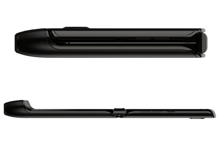 Altre immagini in bassa risoluzione ci permettono di dare uno sguardo al profilo del dispositivo. La prima mostra la parte posteriore del meccanismo della cerniera e uno sguardo al display secondario alloggiato nella palpebra superiore del telefono.