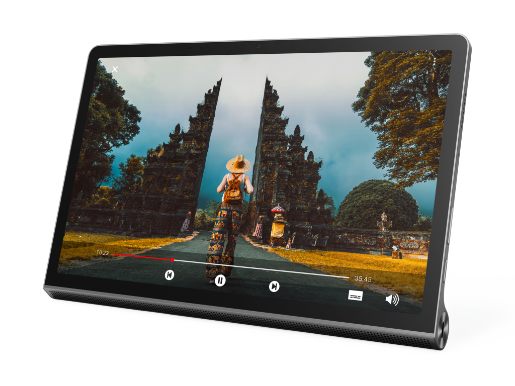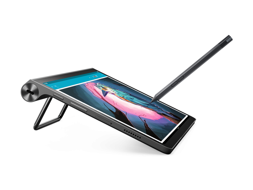 Dal design robusto e il suo bordo arrotolato, è disponibile in due formati con schermo 2K da 11 pollici con Dolby Vision per Yoga Tab 11 (2000 x 1200) e 2K da 13 pollici con Dolby Vision HDR per Yoga Tab 13 (2160 x 1350). Offre una fotocamera da 8 Megapixel che permette lo sblocco tramite riconoscimento facciale con l’aggiunta di due microfoni e riduzione del rumore ambientale per le videochiamate.