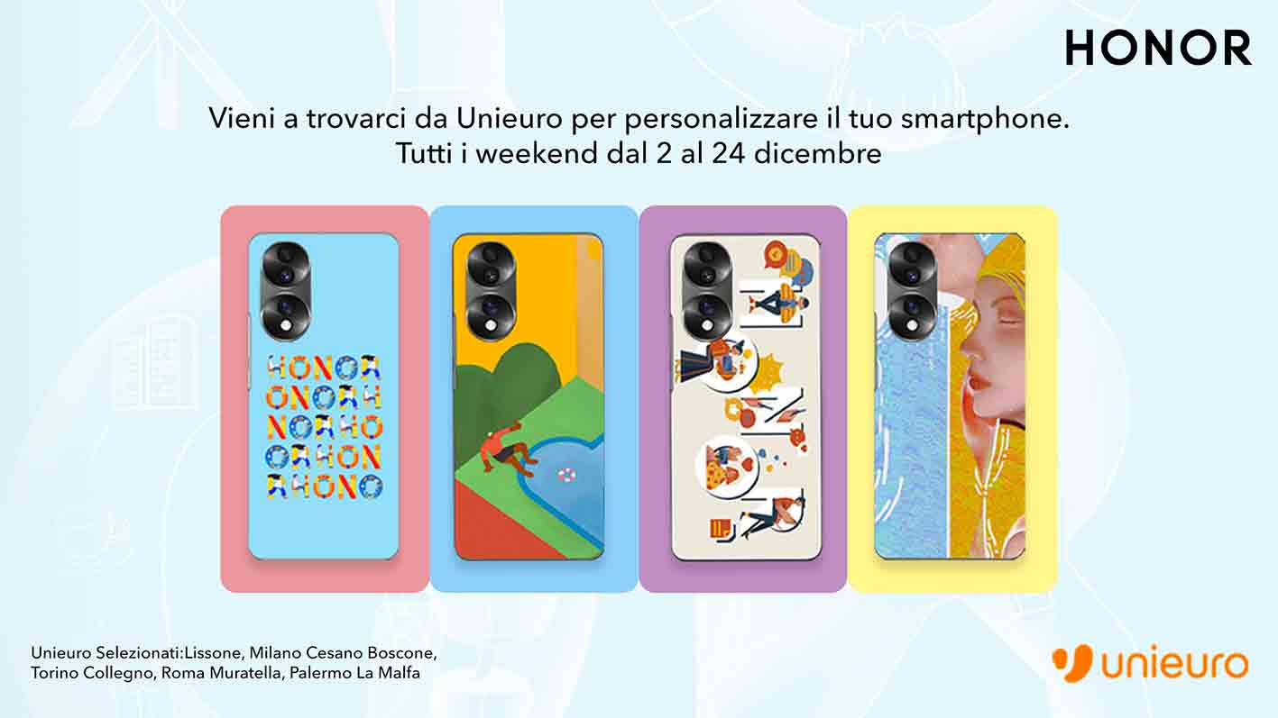 HONOR ha lanciato un progetto in partnership con Unieuro. Durante il mese di dicembre, negli store Unieuro di Lissone, Milano Cesano Boscone, Roma Muratella, Torino Collegno e Palermo La Malfa, verrà allestito un corner dedicato a HONOR e, in particolare, agli HONOR Talents Global Design Awards: il contest internazionale dedicato ai giovani artisti nato con l’obiettivo di supportare e dare visibilità ai migliori talenti in linea con lo spirito del Brand.