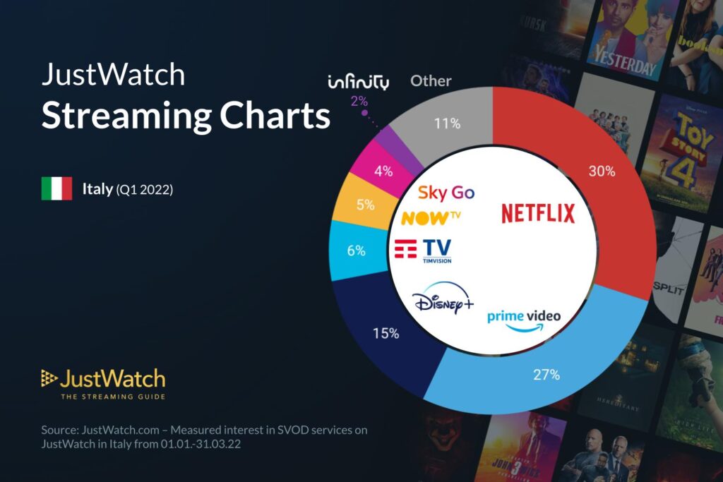 La classifica è stata stilata da JustWatch, un motore di ricerca online per i programmi di streaming diffuso in 100 Paesi che aiuta oltre 20 milioni di utenti al mese a orientarsi all’interno dei tanti contenuti disponibili su Netflix, Prime Video, Disney+ e sugli altri canali di streaming.