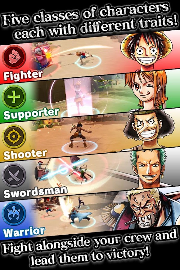 Non abbiamo molte informazioni e per questo motivo non è chiaro se ci sarà alcun tipo di storia o modalità campagna. Tuttavia, le battaglie giocatore contro giocatore avverranno in tempo reale e si svolgeranno nell’universo One Piece. I giocatori dovranno attraversare una mappa 3D durante il gioco, una volta che avranno scelto il loro ruolo di squadra tra cinque classi disponibili; combattenti, personaggi di supporto, tiratori, spadaccini e guerrieri. Ognuno di questi avrà le sue abilità e caratteristiche e assemblare una squadra richiederà molto stategia.