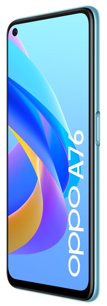 OPPO A76 presenta la lavorazione OPPO Glow, che offre originali giochi di luce sulla scocca con molteplici variazioni di tonalità. È disponibile nelle colorazioni Glowing Blue e Glowing Black e grazie a un sensore di impronte digitali più sottile, posizionato sul lato dello smartphone, risulta più raffinato nel design e più leggero e confortevole durante l’utilizzo.