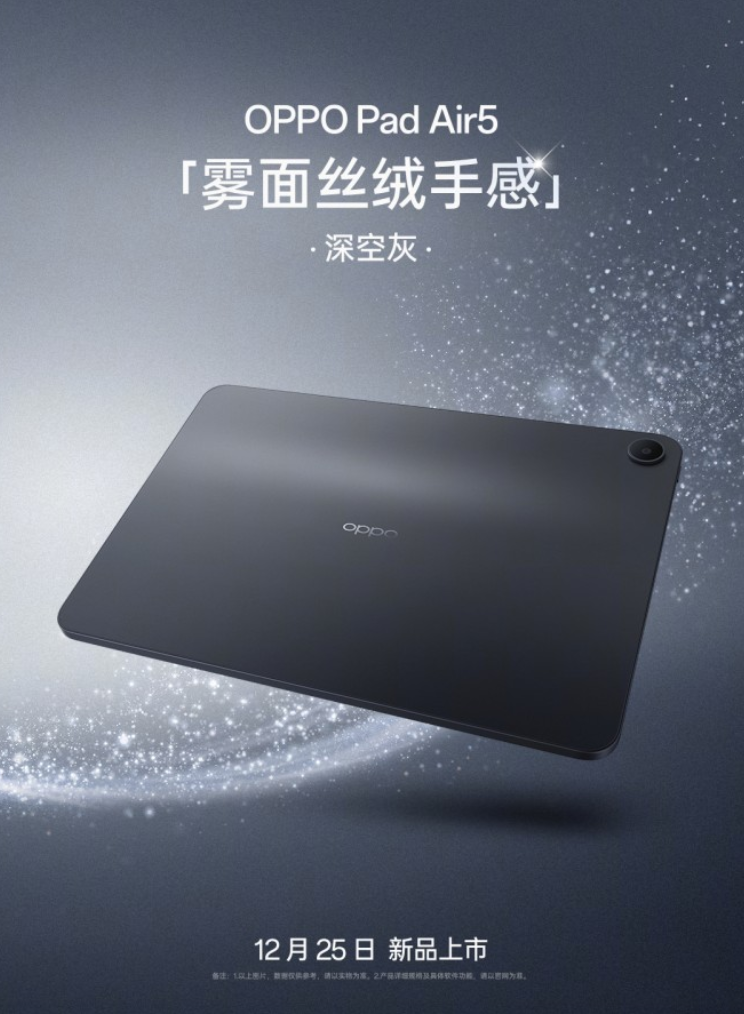 Natale si annuncia una giornata ricca di annunci tecnologici. Dopo Xiaomi, che ha ufficializzato il lancio del suo smartphone 17 Ultra, ora anche Oppo ha confermato che il nuovo tablet Pad Air5 verrà presentato ufficialmente il 25 dicembre. In vista dell’annuncio, l’azienda ha condiviso le prime informazioni ufficiali e le immagini del dispositivo, mostrando in anticipo il design e alcune delle caratteristiche tecniche principali.