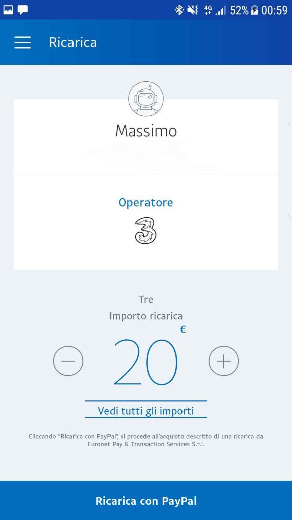 Per acquistare ricariche, ovviamente, si deve avere un conto PayPal (basta inserire username e password e il sistema riconoscerà subito il vostro conto). PayPal Carica può essere collegata alla rubrica telefonica dello smartphone e consente non solo di richiedere la ricarica, ma anche di accettare le richieste di ricarica in un solo tap.