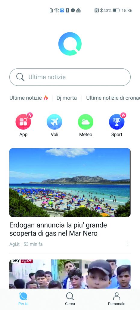 Petal Search è un motore di ricerca, arricchito però di ulteriori contenuti. La scheda “Per te” mostra, proprio Google News, le principali notizie locali di attualità, sport e costume, che possono via via essere personalizzate a seconda dei propri gusti e interessi.