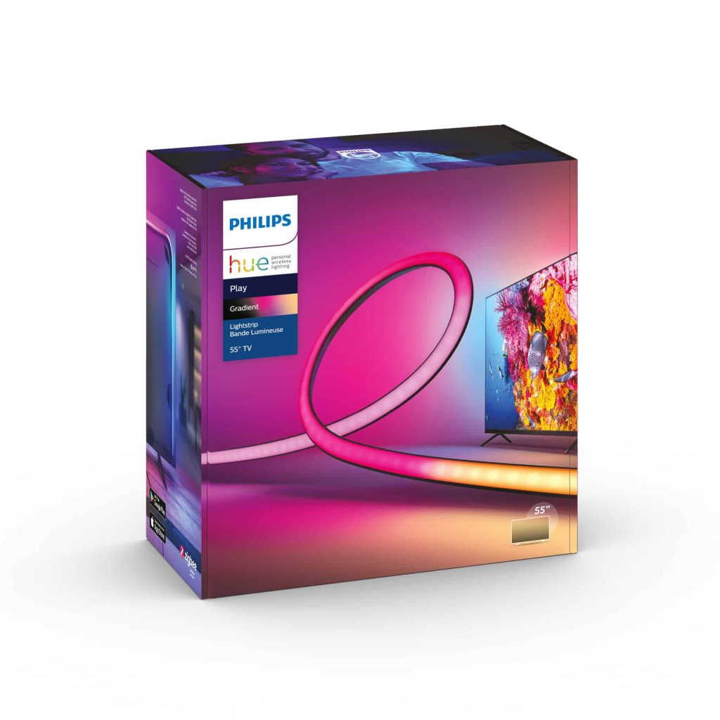 La nuova striscia luminosa Play Gradient è stata pensata per adattarsi sui tv che vanno dai 55 agli 85 pollici e funzionerà anche con il bridge Philips Hue, la sua app per smartphone o la scatola di sincronizzazione HDMI Philips Hue Play con Hue Sync.